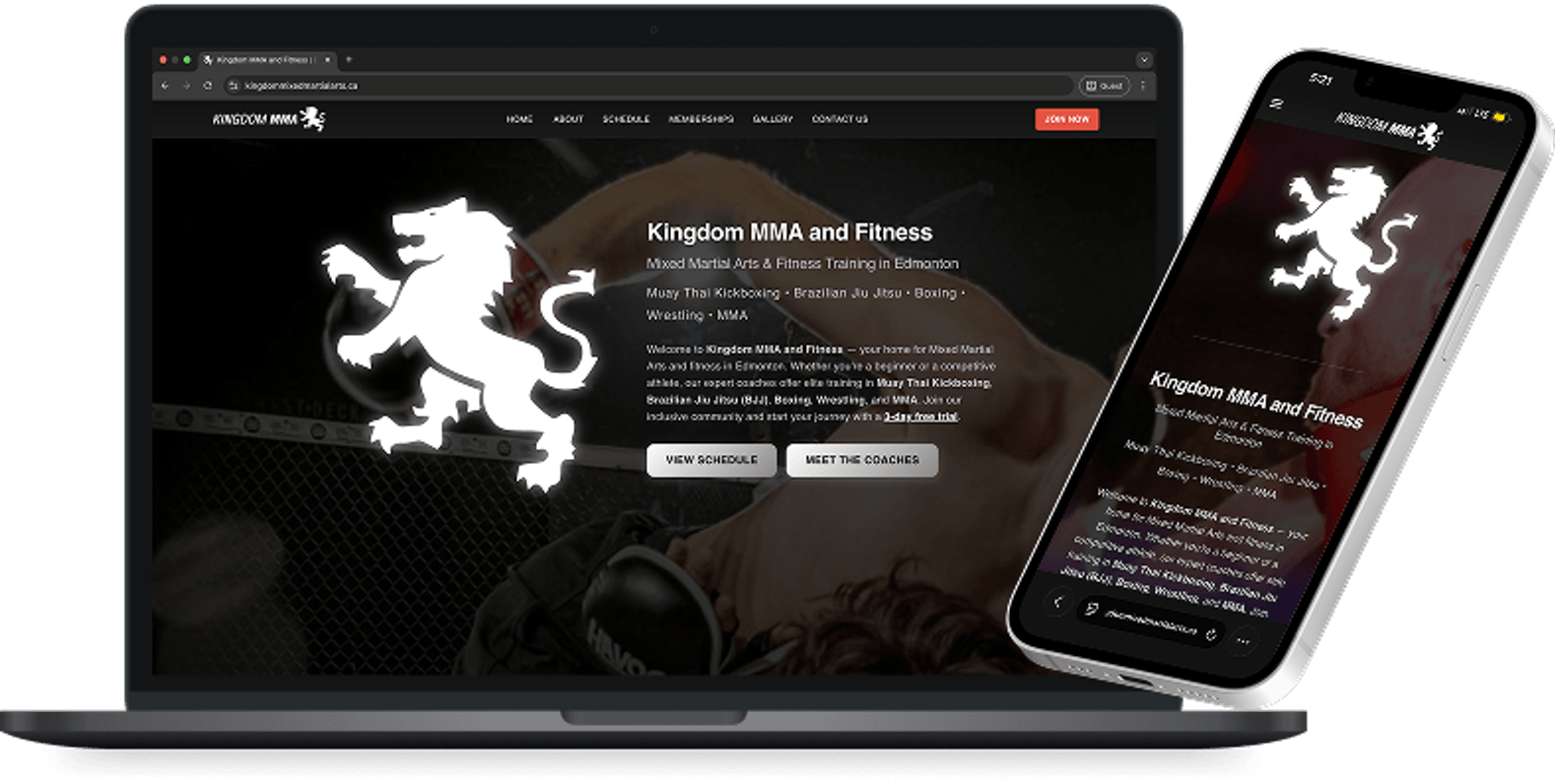 I redesigned Kingdom MMA's website with a modern user-friendly layout. The new website not only looks better, but it loads faster, ranks higher on Google, is more secure, and gives visitors a smoother experience.